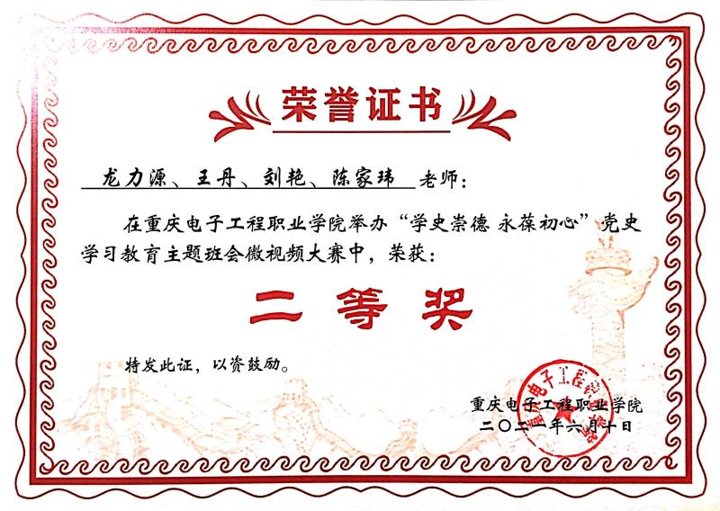 为深入学习贯彻习近平总书记在党史学习教育动员大会上的重要讲话精神,教育引导pg国际师生传承弘扬中国共产党人的政治品格、政治大德,永葆党的先进性和纯洁性。重庆电子工程职业学院开展2021年“学史崇德永葆初心”党史学习教育主题班会微视频大赛,我院陶琰歆、江瑶瑶,李创团队和龙力源、王丹、刘艳、陈家玮团队参赛作品分别荣获二等奖。