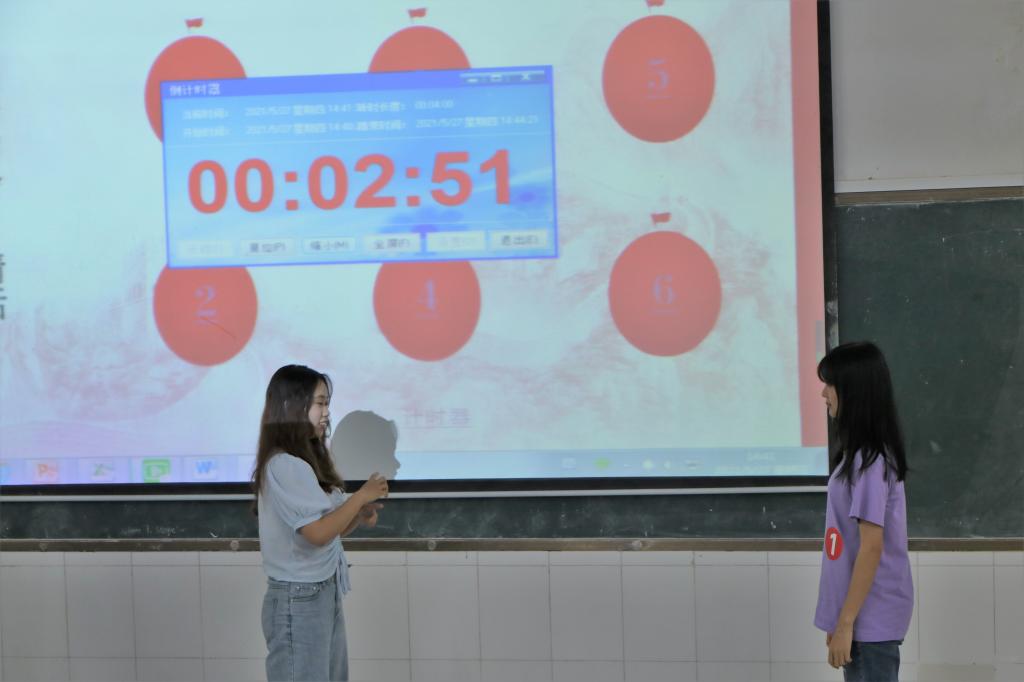 活动主要分为“趣味党史”,“融情宿舍”两个部分。“趣味党史”答题环节各队选手均实力强劲,充分运用所学,争分夺秒、紧密配合。第二部分“融情宿舍”猜字活动时,各队伍在传递字词内容中的幽默表现引得场下观众阵阵欢笑。