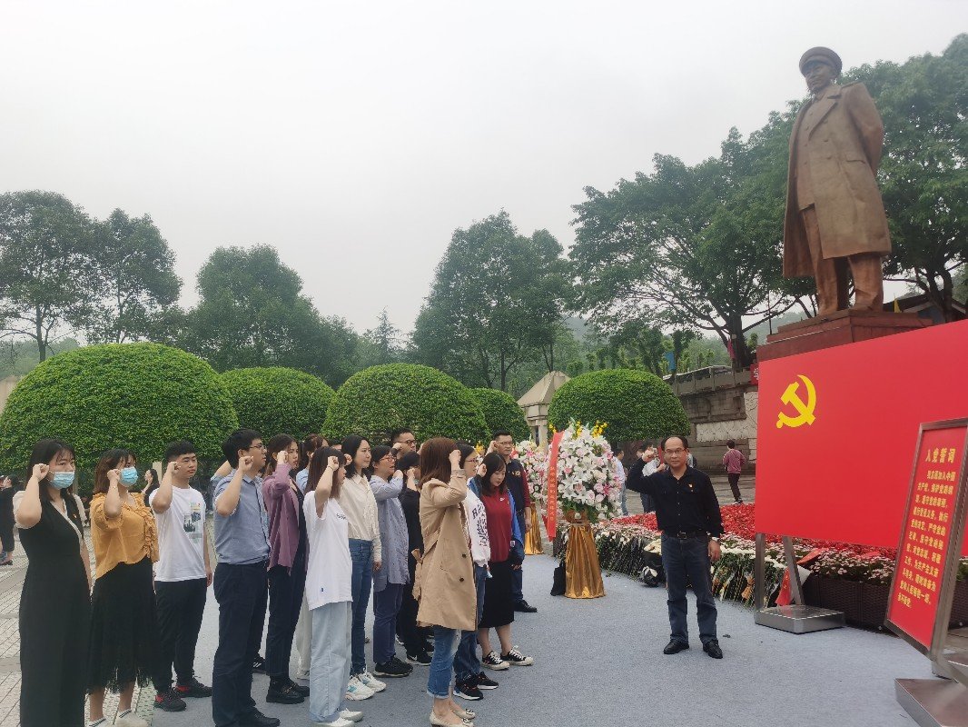 在参观完陈列馆后,由质量管理中心党支部书记钟国祥同志领誓,党员们面对党旗,举起右手,重温了入党誓词。