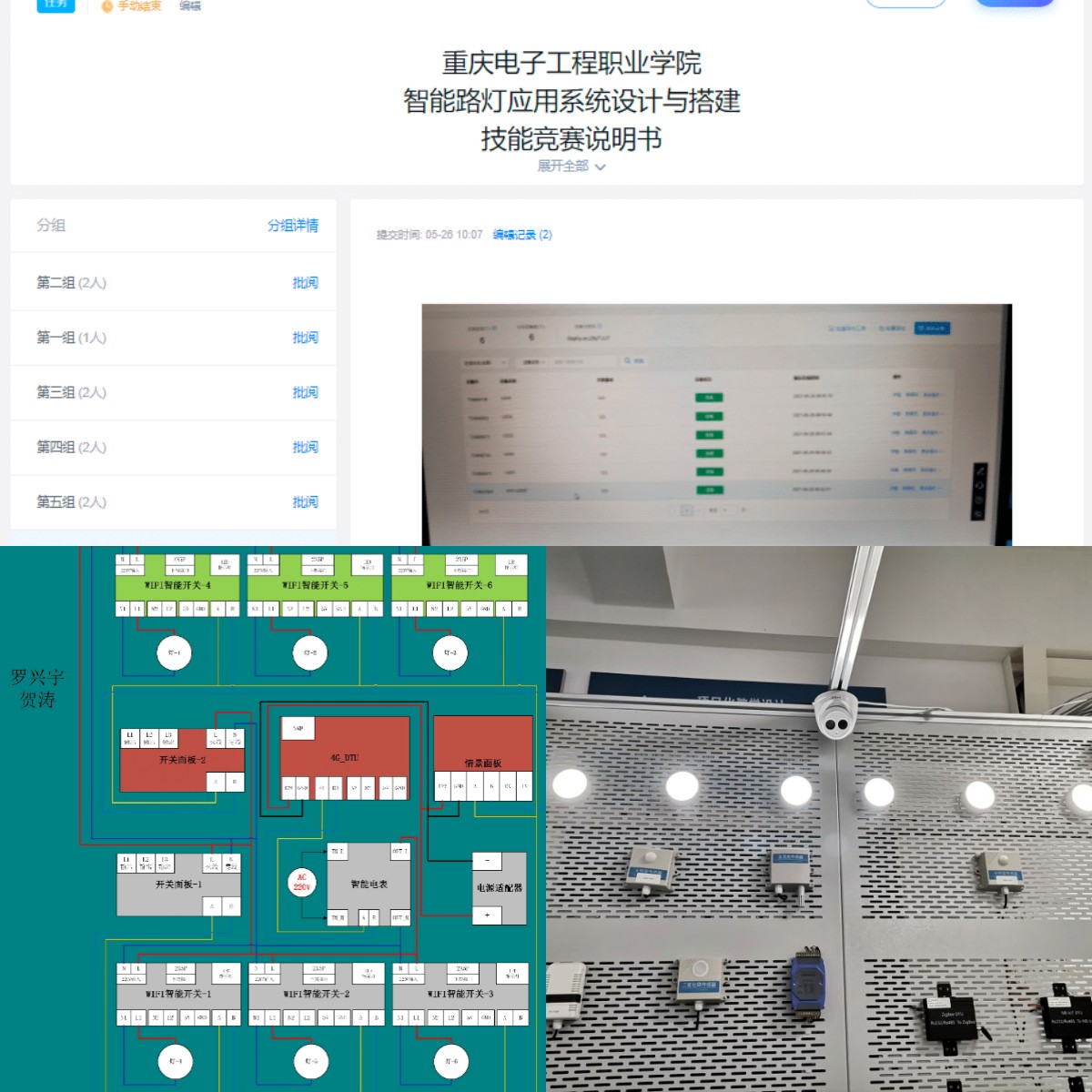 该赛项所聚焦的“智能路灯应用系统设计与搭建”项目,来自于当前智慧城市建设智能路灯的真实应用案例。结合智慧城市系统实训室提供的现场环境,师生结合实际需求完成方案设计、网络配置与部署,开展设备调试和远程云平台控制等任务。比赛筹备之初,就得到了学校教务处、电子与物联网学学院相关领导以及系主任、专业主任们的大力支持,成立了包含教师、学生在内的赛项组委会和裁判组委会。赛项组委会依据校级比赛各项要求,制订了“智能路灯应用系统设计与搭建”赛项《实施方案》《项目任务书》和《评分细则表》。赛前一周,组委会对比赛场地设备、线路、电脑等硬件环境进行了严格检查,保障了比赛的顺利实施。