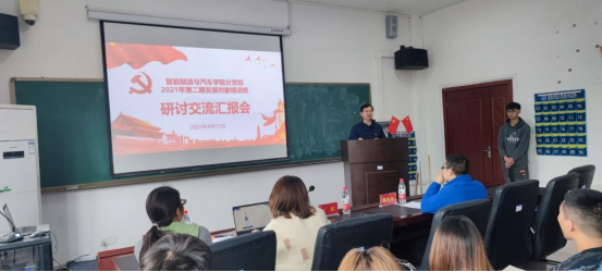 线下专题讲座重点围绕十九届五中全会、党史学习教育、预备党员发展流程及要求解读三个学习专题,由智能制造与汽车学院罗永前、丁伟、张进春、吴伟龙四位分党校教师组织开展。线下研讨专题由魏凡杰同志主持,围绕“当代大学生如何发挥青年先锋模范作用”为主题组织发展对象分组讨论并进行专题汇报。