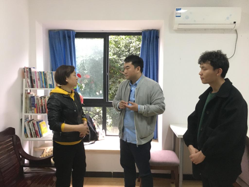 3月20日下午,电子与物联网学院党总支副书记毛弋带领我院学管队伍前往重庆江北幸福加社会工作服务中心,看望我院2020届毕业生刘强。一是对毕业生就业情况进行回访,二是为刘强同学授予“莲子勋章”。