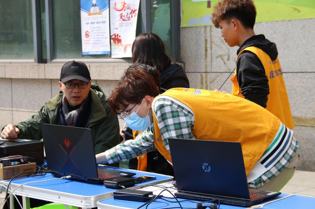 当天中午14:00左右,两队的志愿者们来到丰文街道与街道负责人取得联系后,一队前往福荣达超市广场为活动做好现场设备调试,另一队进行场地布置与物资搬运。活动中,一部分志愿者们为来往居民进行活动简单介绍,有序组织参与。另一部分志愿者负责为居民免费拍照、照片处理及打印,在志愿者的耐心解释下,不少居民纷纷上前照相,参与活动。