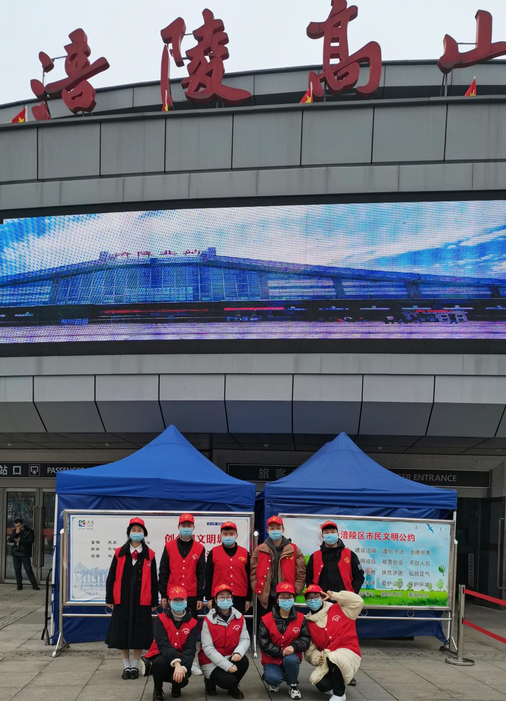 学院信安1905班的王玉合同学在家乡涪陵,在涪陵团区委组织的春运防控志愿服务工作中积极参与、贡献力量。从2月2日开始,志愿者们先在团区委的统一指导下进行了防控志愿服务的岗前培训。作为此次培训和志愿服务工作的领队,王玉合除了日常的志愿服务外,也充当团区委和其它志愿者之间的沟通桥梁,每天要先到团区委领取防疫物资进行分发。大家主要是在涪陵区高山湾交通枢纽站负责引导乘客出示渝康码或行程码、督促乘客佩戴好口罩、协助车站工作人员维护秩序,同时帮助不会使用智能手机的老年人进行注册登记。疫情防控志愿服务,让她意识到了在疫情防控一线中,既有党旗飘扬,也有团徽闪亮。参加此次志愿服务让她有了更多机会为更多的人带去力所能及的帮助。在服务过程中,当看见乘客们脸上洋溢着的笑容,真的感到自己的价值和志愿服务的意义。作为新时代青年,每一次志愿服务的参与都让同学们倍感荣幸,大家用青春的力量筑牢疫情防控的先锋战线,以实际行动展现新时代青年责任担当。春运期间,这抹志愿红将会继续活跃在防疫一线,为守护自己的家园作出一份贡献。