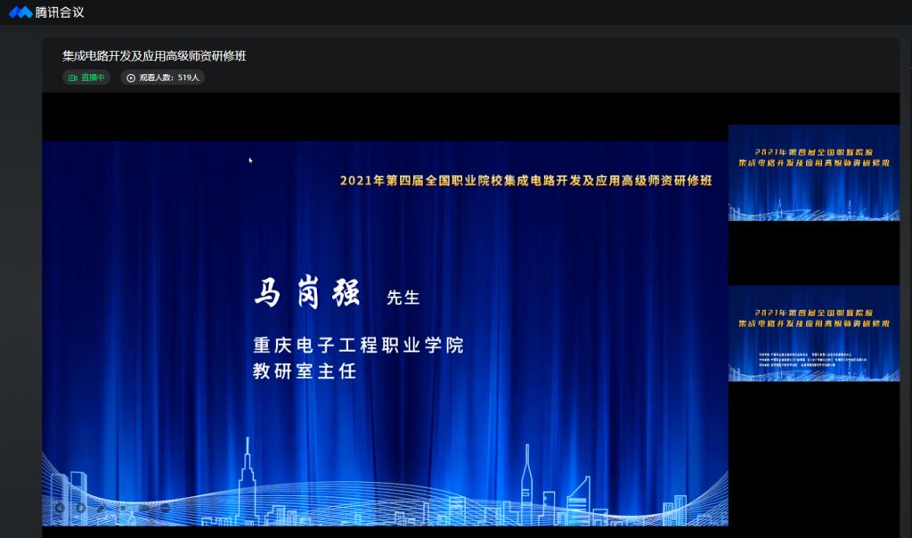 本次研修班由1+X评价组织杭州朗迅科技有限公司主办,来自全国职业院校相关专业500余人通过网络直播参加学习。此次研修班以集成电路制造工艺、芯片测试及典型应用为基础,以集成电路测试平台为载体,旨在提升院校开展1+X试点工作的整体师资水平,打造能够满足教学与培训需求的教学创新团队,推动集成电路规范化教学,开展标准化考试,全面提高1+X证书的教育培训质量,培养集成电路产业所需的技术技能型人才,支持集成电路产业可持续、高质量发展。