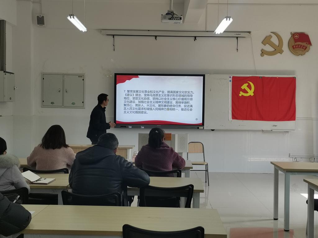 该次党课以引述《中共中央关于制定国民经济和社会发展第十四个五年规划和二〇三五年远景目标的建议》相关内容为切入点,深入讲解了“十四五”时期经济社会发展的重点任务,并择其中关于建设高质量教育体系的举措进行了重点强调。具体从坚持立德树人,培养德智体美劳全面发展的社会主义建设者和接班人;增强学生文明素养、社会责任意识、实践本领;促进教育公平,推动义务教育均衡发展和城乡一体化,鼓励高中阶段学校多样化发展;探索中国特色学徒制等方面进行了阐述。此外,徐小辉同志从支部书记角度,面向支部全体成员对2021年的工作做出了展望,表示要提高政治站位,加强组织领导,支部成员要抓好理论武装,深入宣传阐释,并对标对表要求,推动落实落地。