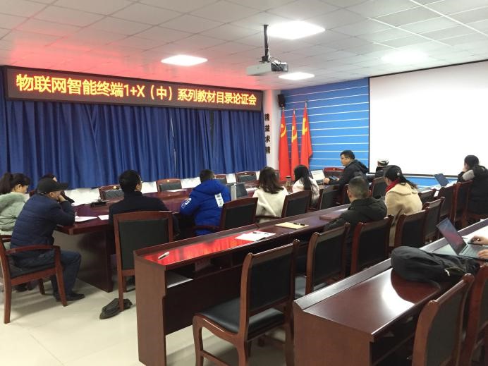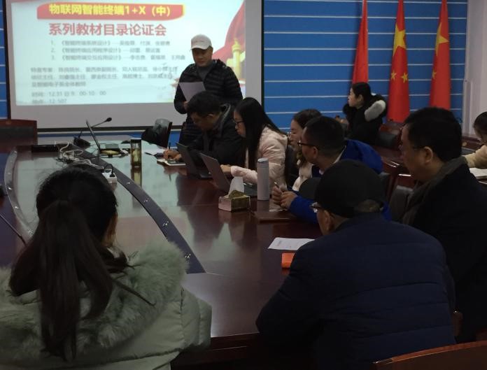 12月31日上午,电子与物联网学院智能电子系在12-507A举行“物联网智能终端1+X(中)系列教材目录论证会”。智能电子系主任王用鑫、信息服务系主任刘睿强、彭华教授、刘京威主任、高超博士及智能电子系全体教师参加。会议由智能终端技术与应用专业主任蔡运富主持。