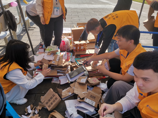 数字媒体学院小灯塔志愿者们在学子广场宣传以及讲解,对同学们捐赠的物品进行检查和登记,通过公益机构定向捐赠到指定受助群体,最后大家所捐赠的物品会根据旧物不同品类、不同复用程度(残旧程度),送往不同处理厂商进行二次处理,使大家的物品实现低碳化、高效率、精准、价值最大化的公益参与。