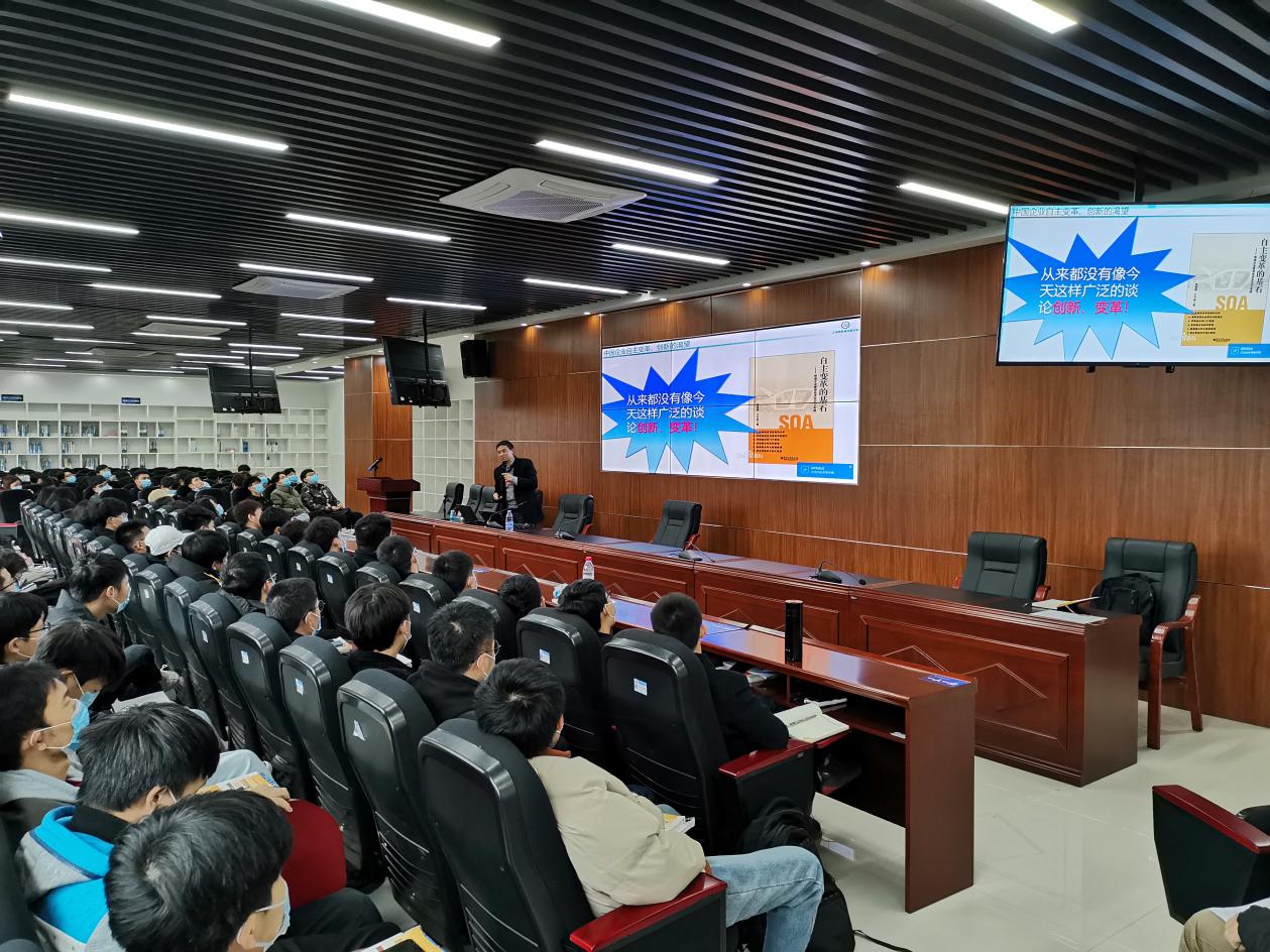 11月24日14:00-16:00,由电子与物联网学院承办的“重电大讲堂”第25期学术讲座在13-307A会议室顺利举行。重庆斯欧信息技术股份有限公司于万钦董事长应邀开展了一场题为《智能制造与工业互联网最佳落地实践》的学术讲座。本次讲座由学院杜雪飞教授主持,pg国际170余名教师及学生参加了此次学术活动。