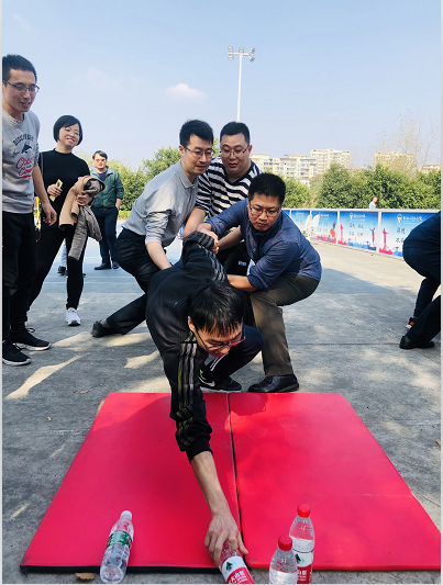 活动每周四进行共分三期开展,分别为“接龙比长短”、“企鹅漫步”、“隔空取物”。在“接龙比长短”项目中会员分为六组,每组10人男女教师搭配合作,总计米数最长队获胜,最终联合小组和信息服务小组获并列第一名。“企鹅漫步”活动以两两对决展开,完成时间最短者胜,智能电子小组以1分56秒成绩获得第一名。“隔空取物”项目要求在规定线内合作开展互助,一人领取线外物品,用时最少获胜,最终信息服务小组获得第一名。