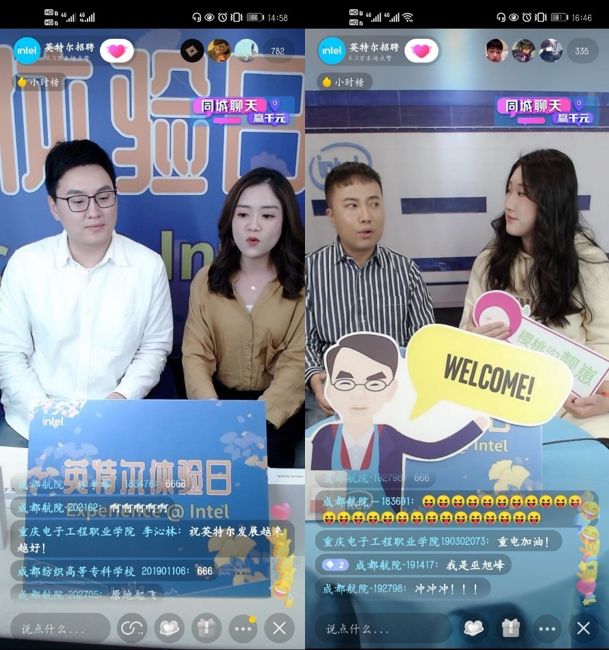 在与主播互动环节,pg国际两位学生助理以校史馆为背景,向英特尔产品(成都)有限公司和各大高校同学分享了pg国际的办学理念、办学特色及微电子技术专业的发展培养目标。主播向我们展示了英特尔公司的人文环境,员工食堂,生产车间,公司年会以及团建活动等。多位英特尔资深总监、经理、主管、工程技术人员将自己的成长发展经历、职业规划分享给了学生们。同时还分享了简历书写和面试的技巧。整个直播活动内容丰富、互动性强,参与学生积极性高,直播活动气氛热烈。