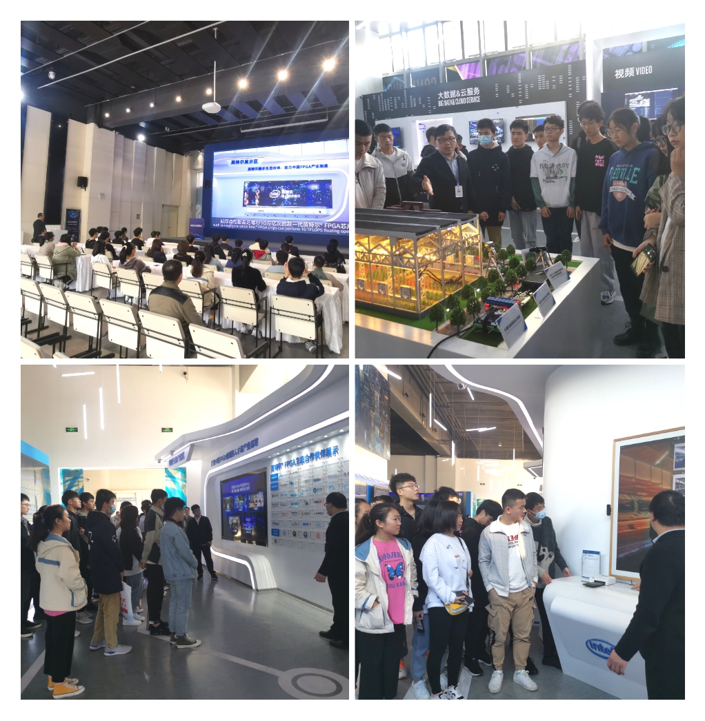 活动中,创新中心赵雷介绍了企业机构设置及工作岗位,并对刚跨进大学校园的新同学们提出了宝贵的建议。随后同学们在企业方培训讲师的带领下,参观英特尔FPGA中国创新中心的创新展厅,通过零距离的创新交互方式感受了英特尔的核心技术以及英特尔FPGA在大数据&云服务、5G&通讯、视频、自动驾驶、人工智能等领域技术研究与应用推广成效。