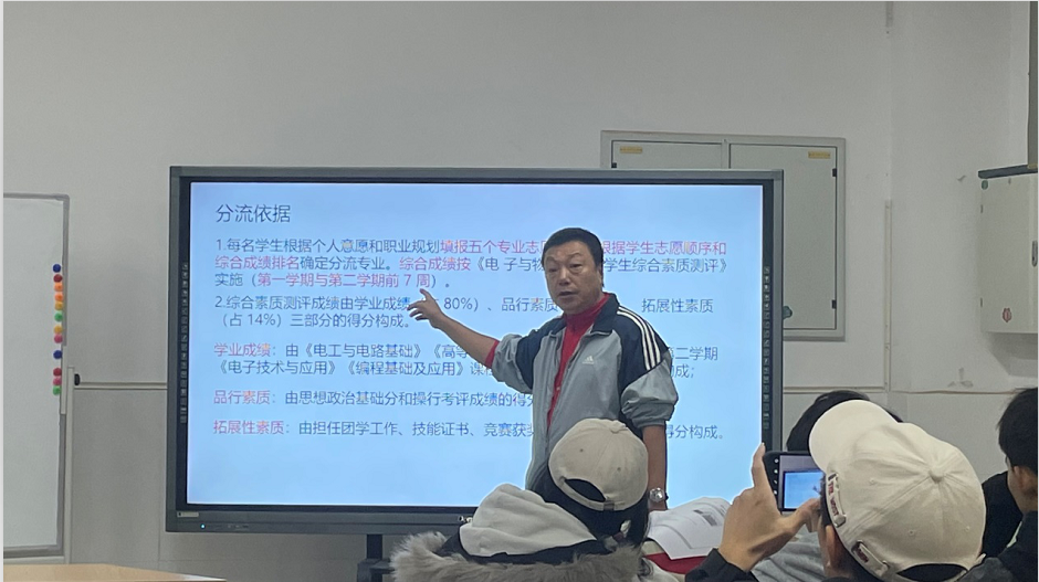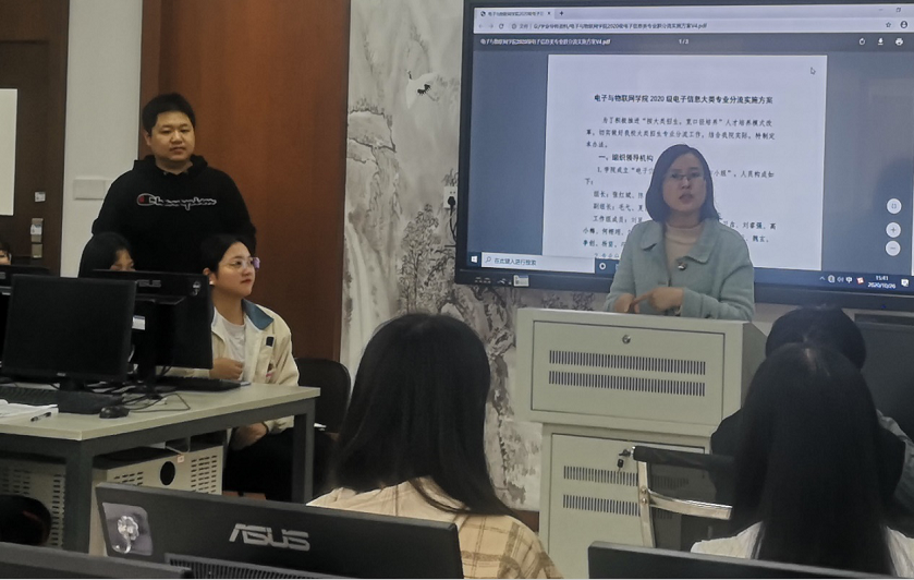 为了积极推进“按大类招生,宽口径培养”人才培养模式改革,切实做好pg国际大类招生专业分流工作,结合电子与物联网学院实际情况开展分流工作,特制定并实施2020级专业分流方案。为将分流政策通知宣传到位,电子与物联网学院将2020级专业分流实施方案在学院进行公布,并以班级为单位进行了专题解读与宣讲。
