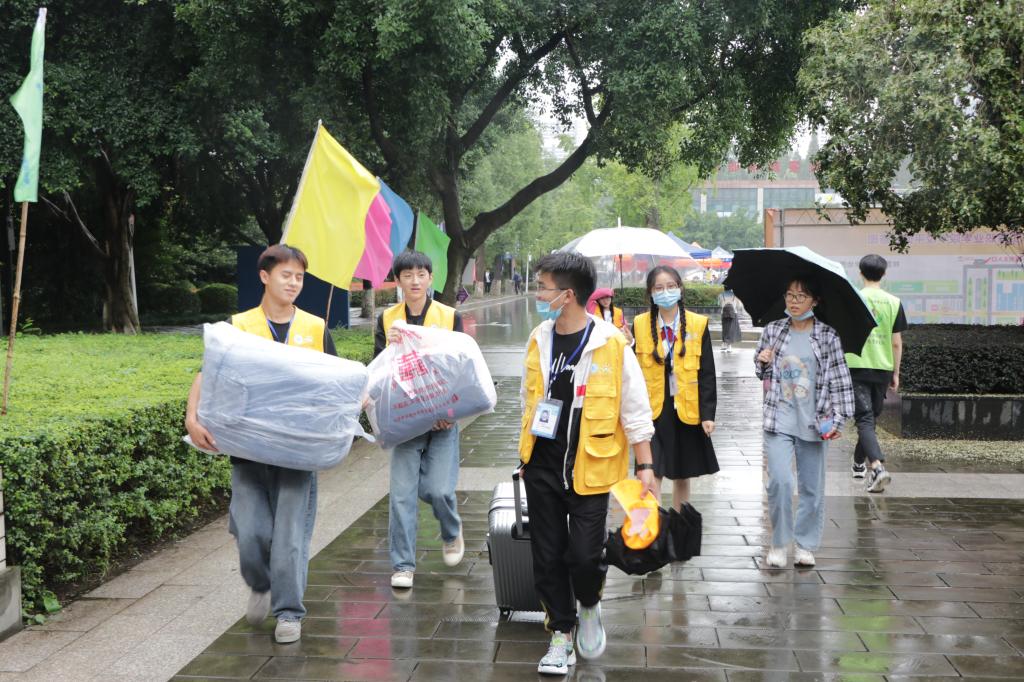 因疫情防控需求,新生家长不能进出校园,学院团总支·学生会全体成员、班级积极分子、“向日葵”志愿者服务支队队员等组成的志愿服务团队,帮助新生搬运行李、完成注册缴费、领取生活物品、办理入住、熟悉校园等,使新生从进入学院直至顺利入住宿舍,全程都有志愿者的引导和帮助。学院老师们耐心细致的解答新生提出的各种专业咨询问题,志愿者们主动热情地介绍学院各项特色活动和各种“生活经验”,让新同学们感到关怀备至。整个迎新场面人头攒动、秩序井然。学院热情周到的服务很快消除了新生们初来乍到的陌生感与紧张感,取而代之的则是对大学生活的憧憬以及对自己专业的期待。