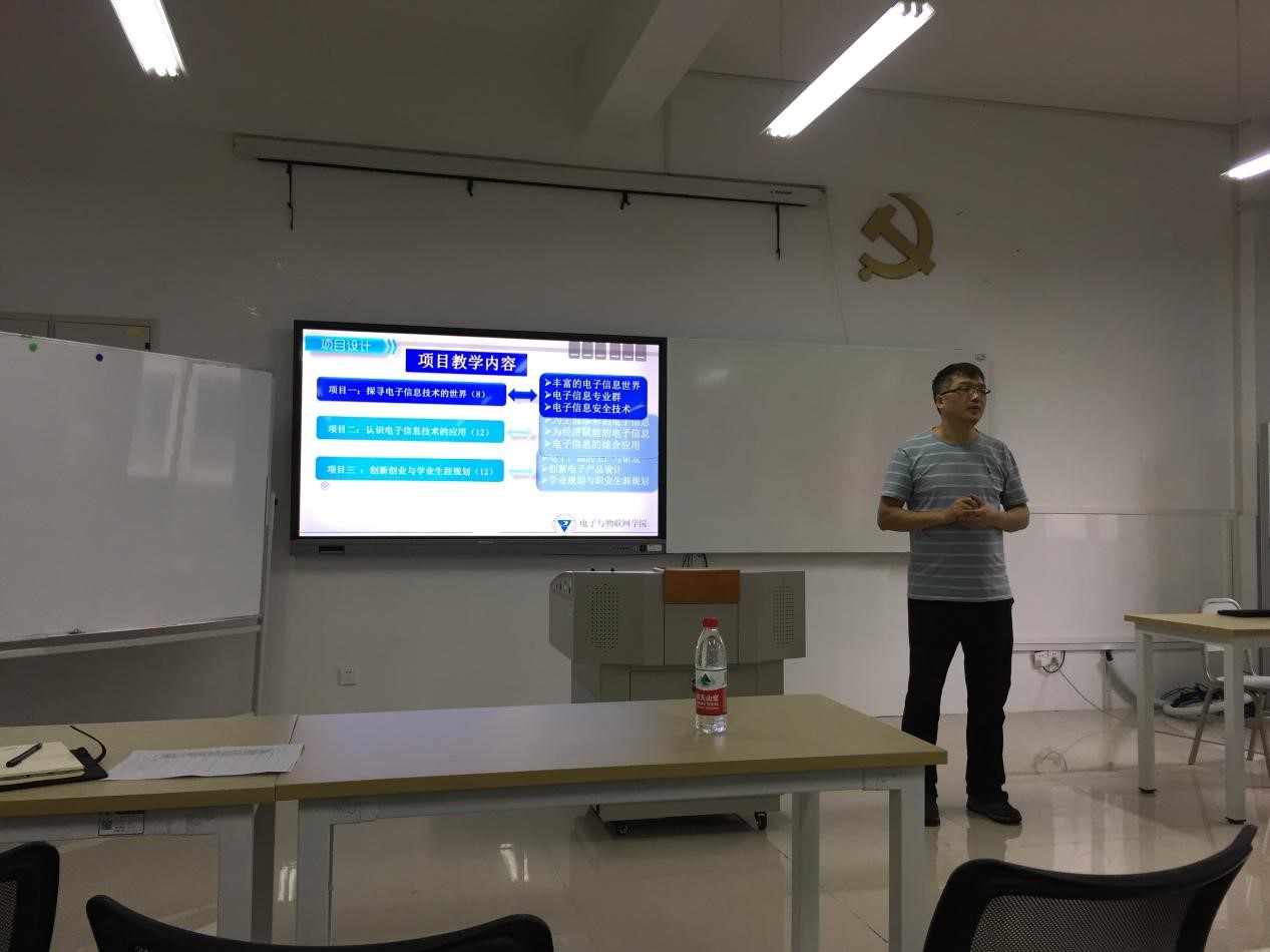9月6日,电子与物联网学院智能电子系在12504室举行项目化课程说课活动。本次活动旨在提高2020-2021第一学期的课程教学质量,提升教师的职业能力。我院陈良院长、夏西泉副院长、毛弋副书记、信息工程系徐小辉主任以及智能电子系全体教师参加了此次说课活动。