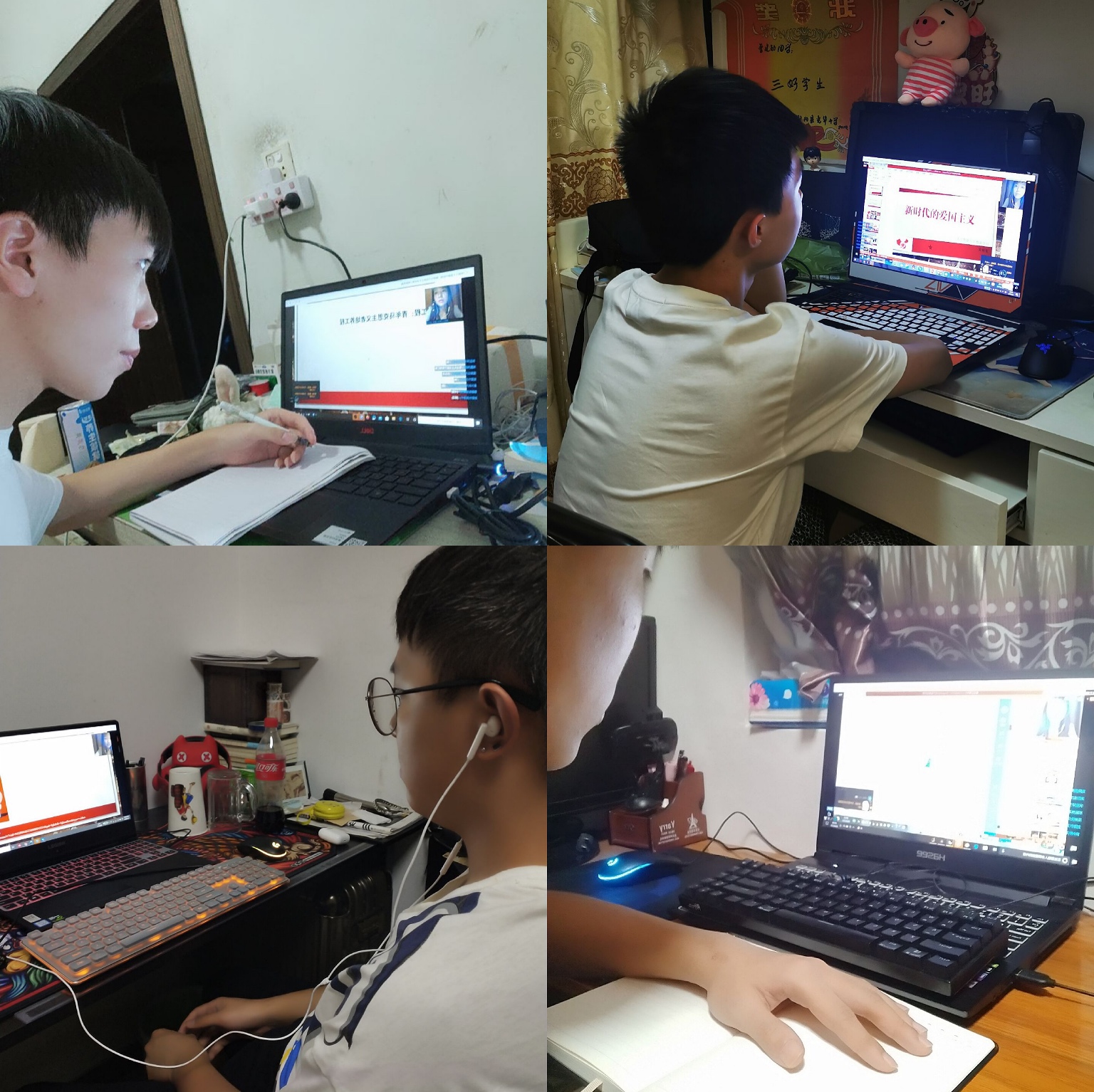 同学们利用网络认真学习