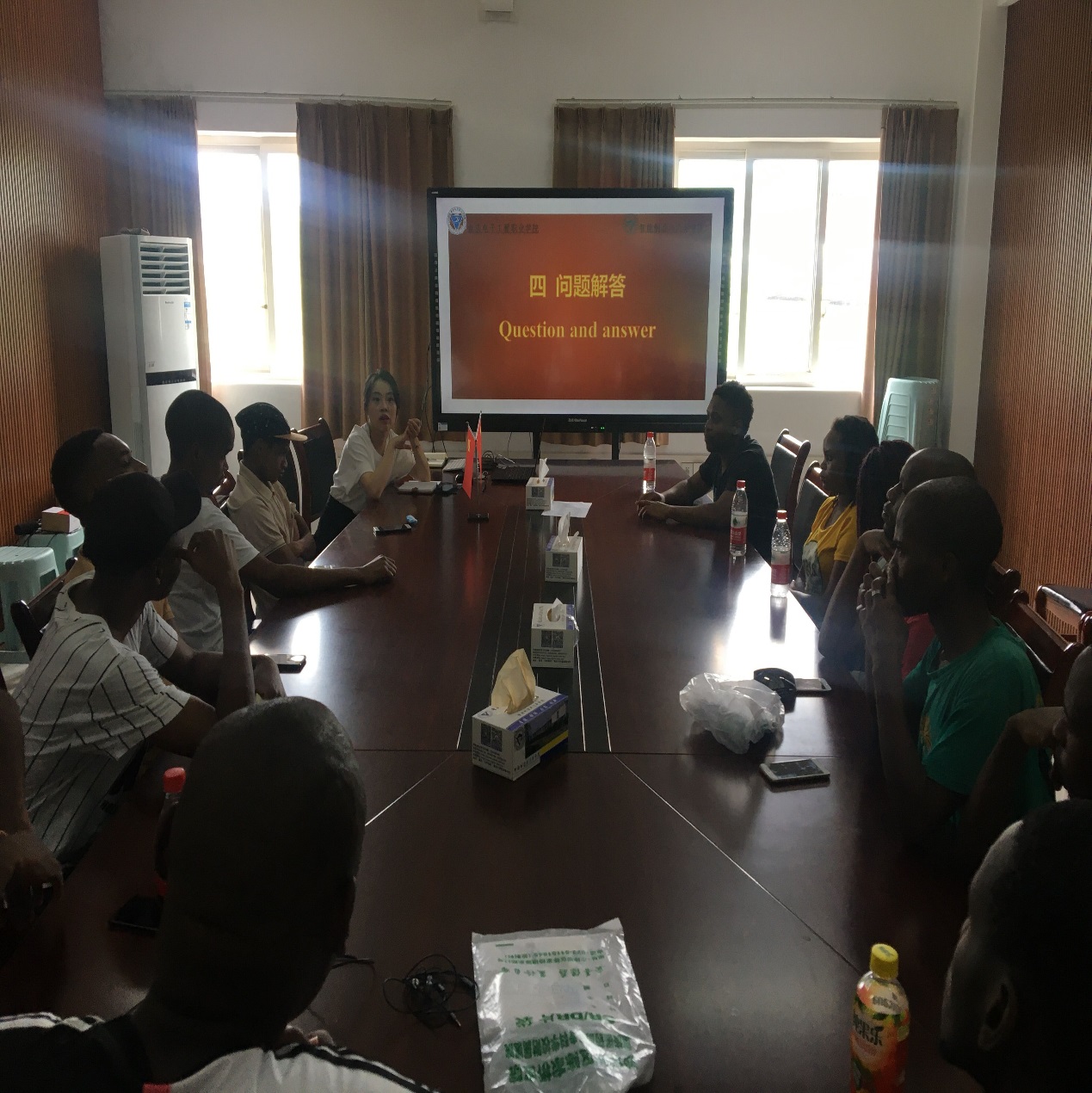 临近期末,2019~2020学年第二学期留学生教学工作接近尾声,为倡导留学生度过一个安全、有序、充实的暑假,并做好南非留学生第二阶段实训工作安排。2020年7月3日下午,智能制造与汽车学院在B301会议室召开南非留学生期末主题班会。南非班班主任李雯、陈义老师和重庆市南非项目中心周若雨经理及全体南非留学生参加了本次班会。