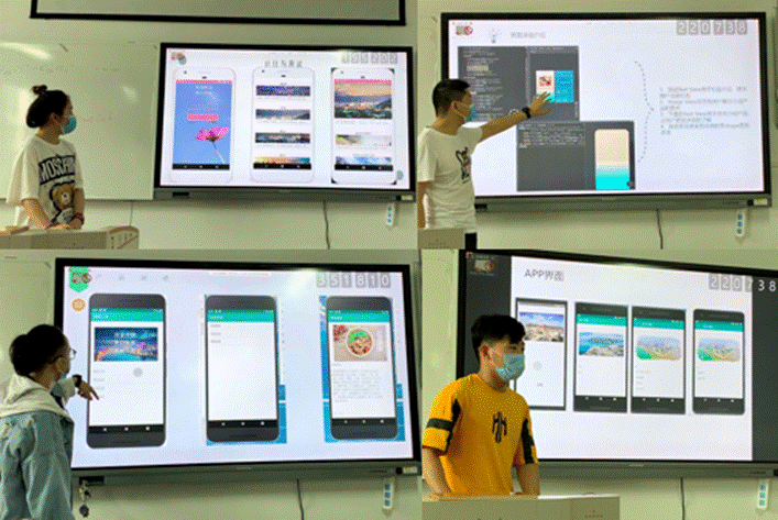 本次项目从物联网应用专业2018级6个班一共收到学生作品60余件。学生通过对家乡疫情期间复工复产及经济恢复面临的困难点进行项目需求分析,提出项目(产品)的功能设计,基于Android完成项目平台的设计实现,最后在复学后的课堂上进行项目展示汇报。学生在项目产品的需求、设计、代码实现、汇报展示过程,充分调动每位学生的学习积极性,学生的潜能和优势得到充分展现,人人参与“做中学,学中做”。同学们在项目总结时表示收获颇多,有的学会主动分析理解代码的逻辑结构;有的学会了团队间的沟通交流与协助;有的表示更加热爱自己的家乡;有的同学开始积极思考未来的职业规划。