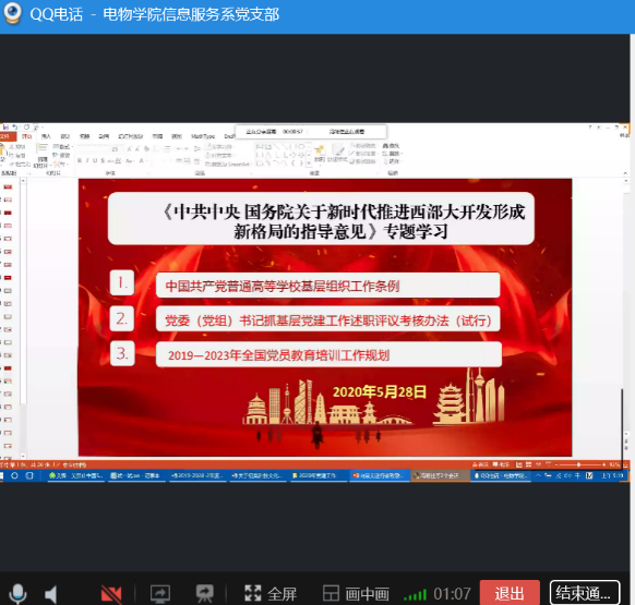为落实党中央、国务院及教育部工作的部署要求,按照党员干部理论学习常态化机制要求,5月28日下午,信息服务系党支部通过QQ线上会议形式,召开主题为“严密组织体系,强化政治功能”的主题党日活动。支部全体党员参会,支部副书记冯筱佳主持。