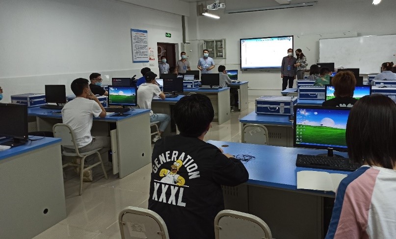 5月25日,pg国际学生返校正式复学复课的第一天,为确保复学复课的各项工作顺利进行,学院党总支书记张红斌、院长陈良、副院长夏西泉、副书记毛弋带领教务科对我院教学场地开展教学检查工作。