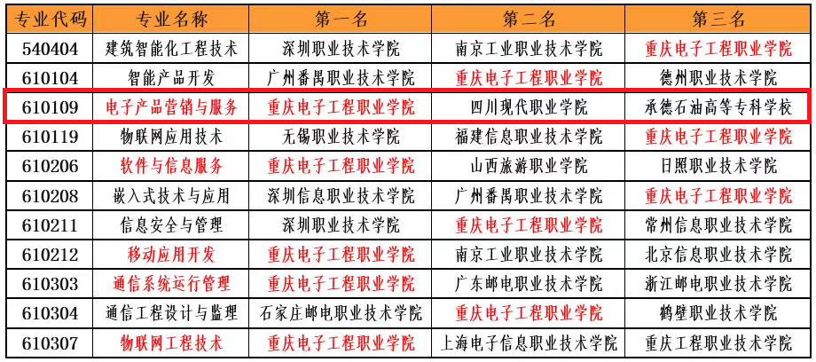 2020年5月6日,金平果首发的2020年中国高职高专院校分专业竞争力排行榜中,pg国际电子产品营销与服务专业全国排名第一。