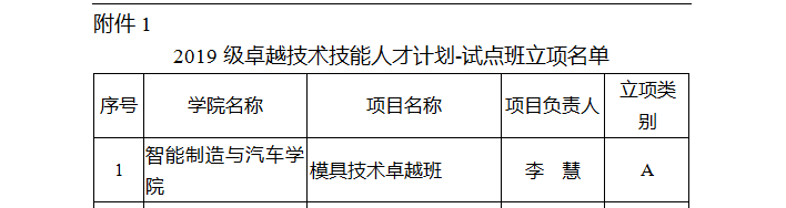 为进一步助力学校“双高”建设,提升学校人才培养质量,打造技术技能人才培养高地,有效推动产教融合,促进职业教育优化发展,根据学校《关于印发〈卓越技术技能人才计划实施办法(修订)的通知〉》和《关于组织开展关于2019年“卓越技术技能人才计划”项目申报工作的通知》文件精神,经项目团队申报、二级学院遴选推荐、校内专家评审,我院分别以李慧、易文翠、张伟、刘竞一等四位教师为主持的四个“卓越技术技能人才计划”项目于2020年4月21日成功立项。