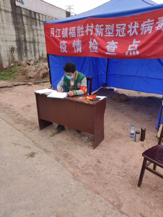重庆电子工程职业学院电子与物联网学院物应1704的李想同学作为一名大学生志愿者,时刻坚守在宜宾市高县月江镇福胜村的疫情防控检查点的岗位上。他每天的工作就是对来往车辆进行登记,及时劝返外地车辆,同时向村民普及一点自己从网上了解到的防疫知识和政策。李想同学说到:“虽然每天的工作很枯燥,但我想尽自己能力所及为疫情防控贡献自己的力量,做好一名大学生党员的模范带头作用。”作为一名党员的他始终没有忘记自己的身份和责任,时刻提醒自己谨记党员的带头模范作用。