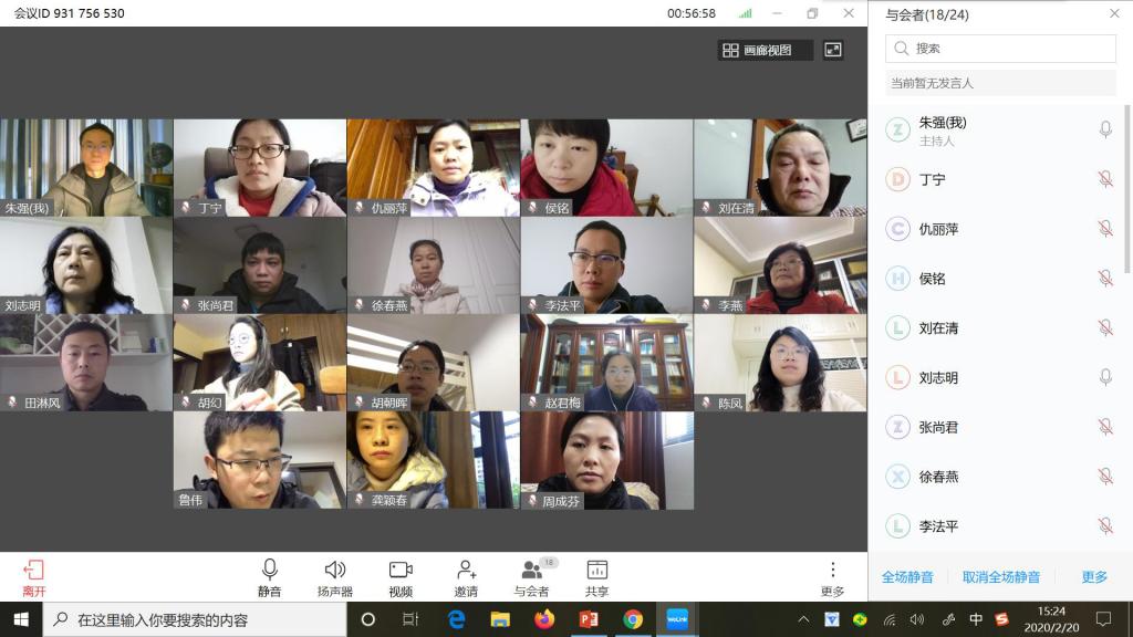 为深入学习贯彻习近平总书记对疫情防控工作的重要讲话精神和重要指示要求,做到“坚定信心、同舟共济、科学防治、精准施策”,按照学校党委组织部通知安排,以“同心战‘疫’,我是党员我带头”为主题,图文信息中心党支部于2020年2月20日下午14时至16时采用“华为云welink”视频会议方式开展了一次特殊的主题党日活动。党支部书记朱强同志主持本次在线视频主题党日活动,支部18名党员同志通过视频连线方式参加研讨学习习近平《关于加强党的领导、为打赢疫情防控阻击战提供坚强政治保证的通知》、《习近平总书记在中央政治局常委会会议研究应对新型冠状病毒肺炎疫情工作时的讲话》以及《重庆电子工程职业学院关于在新型冠状病毒肺炎疫情期间开展线上工作的通知》。