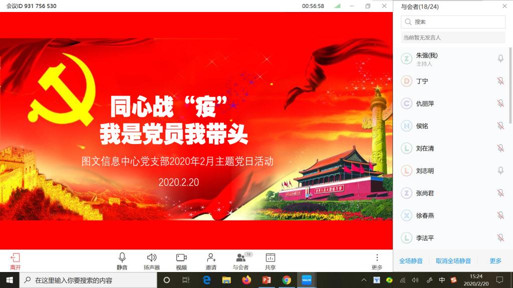 本次特殊的主题党日活动是图文信息中心党支部成立以来首次采用视频会议形式开展的活动,这是提升党建工作效率、效果的一次有益尝试,同志们认为在这个特殊时期开展特殊的主题党日活动对于增强信心、鼓舞战胜疫情的斗志都具有重要的意义。