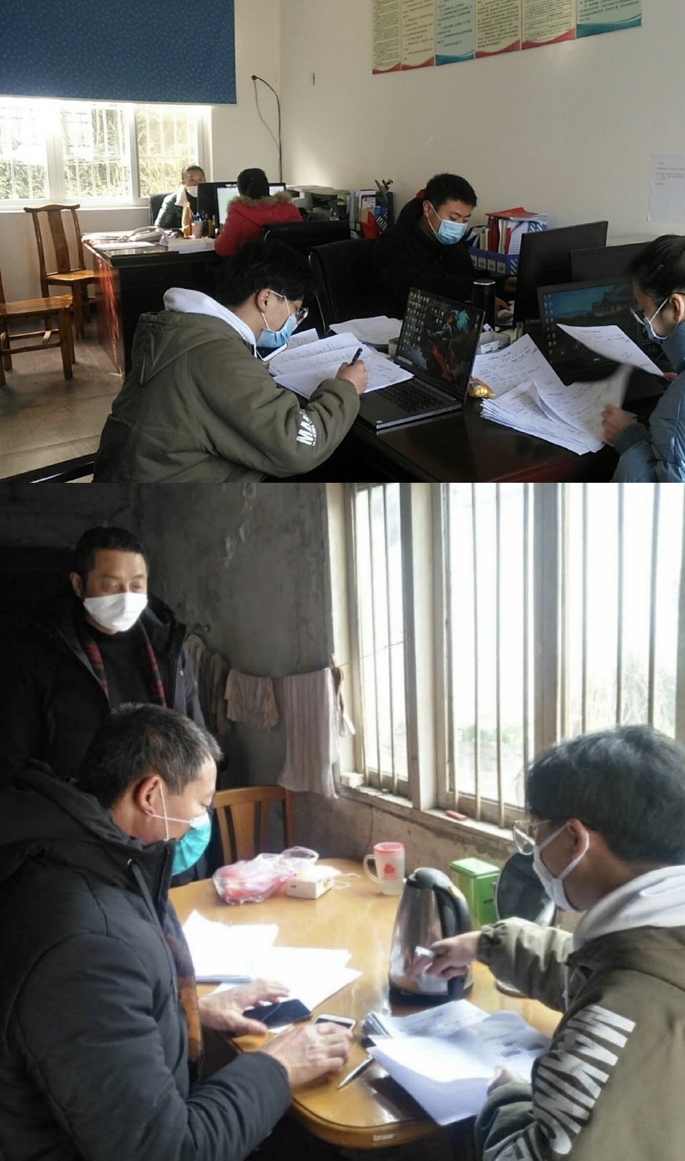 图为汪逸威同学排查每家每户的人口流动情况。