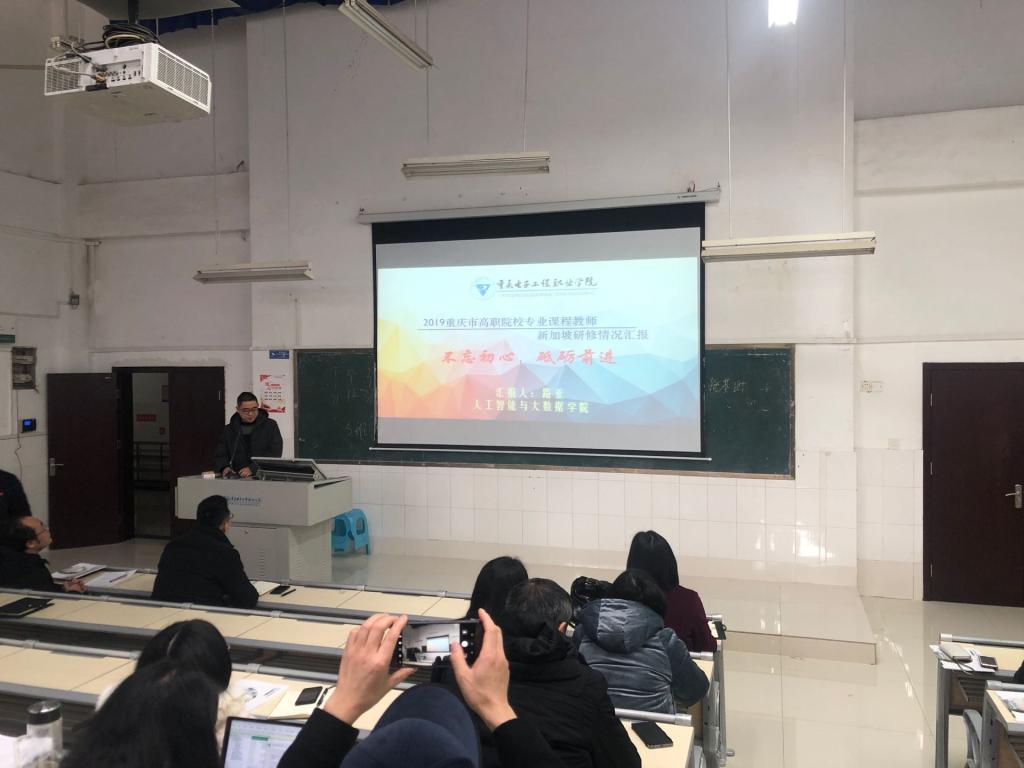 2020年1月9日下午,人工智能与大数据学院在7-206举行了2019年海外研修教师专题交流汇报会,云计算技术与应用专业骨干教师路亚就“2019重庆市高职院校专业课程教师新加坡研修班”学习与感悟做了专题汇报分享。
