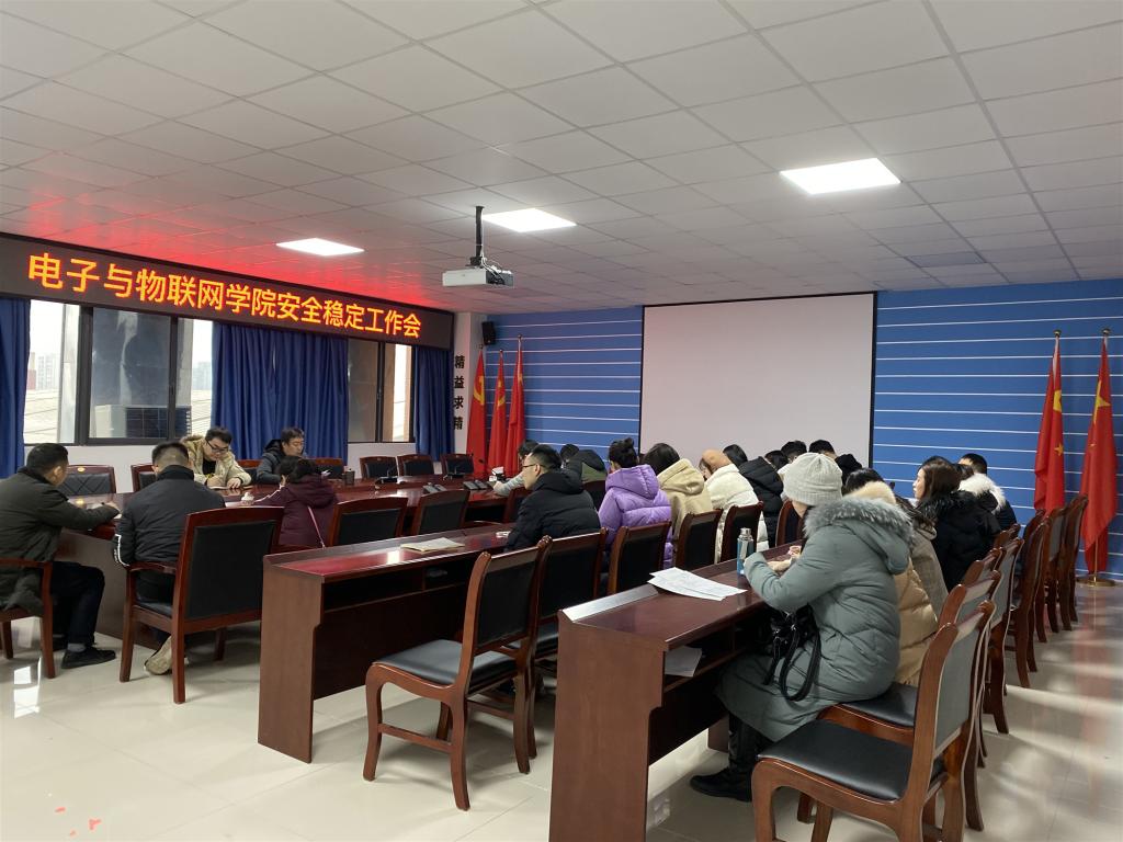 1月8日上午9:30,电子与物联网学院2020年寒假期间安全稳定工作会在南校区12507A会议室召开,学院党总支张红斌书记主持本次专题会。学院毛弋副书记,工程中心、学管科全体人员,各系科代表共30余人参会。本次会议旨在做好寒假期间安全稳定工作,杜绝各类安全事故发生,维护校园假期安全稳定,确保师生度过一个平安祥和的假期。