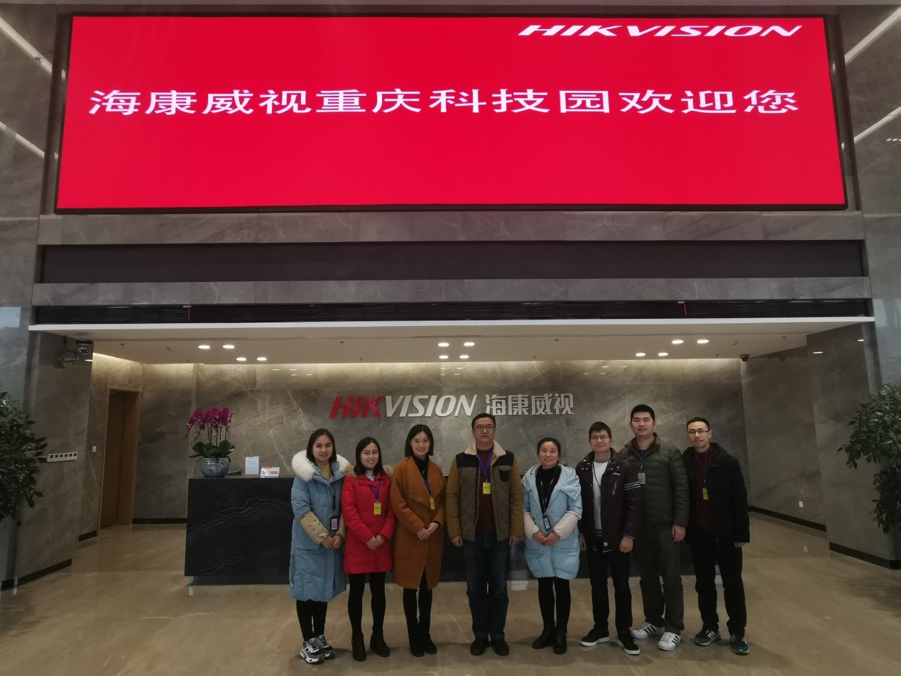 2019年12月23日,由智能电子系主任王用鑫教授带队,智能电子系与信息工程系教师代表吴娟、刘勇、雷晓平、张碧勇、熊军洲等一行6人前往海康威视重庆科技园调研考察,洽谈校企合作事宜。