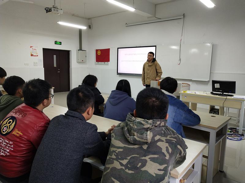 2019年12月13日,南京大屠杀死难者国家公祭日当天,电子与物联网学院团总支在12栋506教室,组织了本学学期第二次精品团课的学习,学习内容为《新时代爱国主义教育实施纲要》。本次团课由团总支精品团课讲师钟炳男同学主讲,电子与物联网学院团总支学生会各个部门干事参与学习。