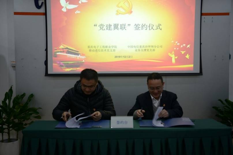 中国电信重庆分公司和重庆电子工程职业学院先后开展了“不忘初心、牢记使命”主题教育,一直在找问题、找差距。中国电信亟需5G网络建设的工程师,建设高质量的5G网络为人们提供信息服务;而重庆电子工程职业学院践行“三全育人”理念,以培养电子信息类的高技能人才服务区域经济为目标,双方不谋而合。重庆电子工程职业学院党委和中国电信重庆沙坪坝分公司党委签订了“党建翼联”的全面合作协议,以党建引领双方合作,引领人才培养。