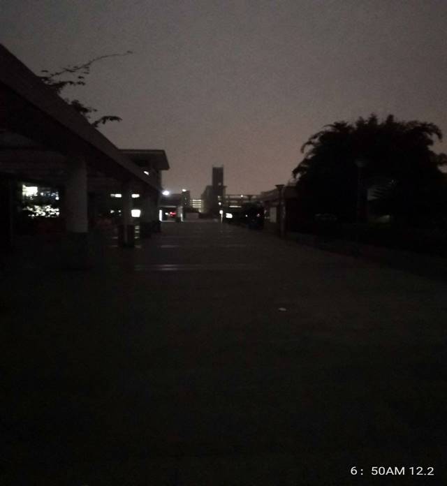 图9 同学们早上走出宿舍时拍的学院凌晨的灯光
