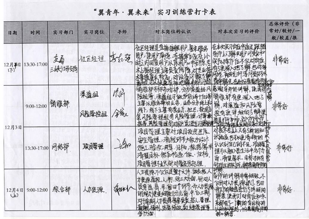 本次实训营采用一带三的师徒制和多岗轮训的方式,让同学对不同部门的多个岗位进行了实岗体验。师傅的爱护、尊重、耐心指导、以身作则,让每一位同学受益匪浅;不同岗位的体验和了解,让他们开始懂得找寻自己的职业发展方向并对以后的学习进行思索和谋划。