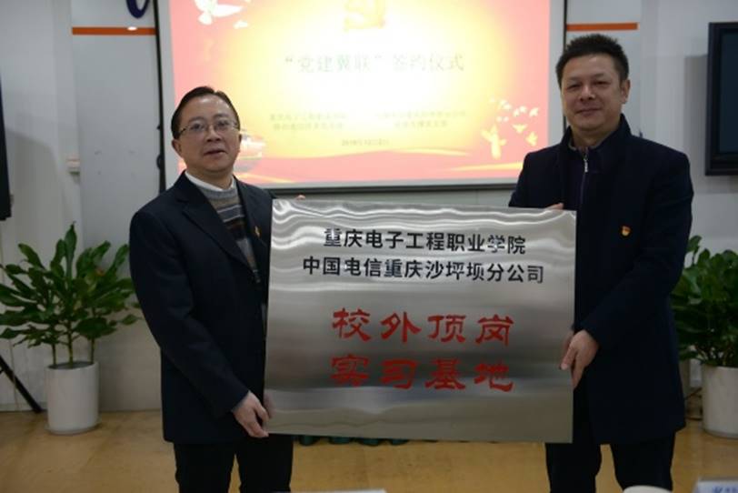 “党建翼联”引领专业建设,学校党委副书记唐玉林和重庆电信沙坪坝分公司党委书记雷波共同签订了校外顶岗实习基地协议,利用基地实力促进人才培育中技术技能的融合融通,利用真实的职场文化感染使学生能够更快的接触最新设备最新技术,搭建了“学校-企业”实践的双平台。