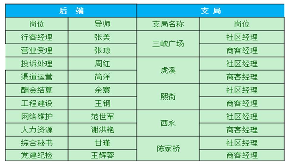 依托重庆电信的校外顶岗实习基地,移动通信技术党支部和业务支撑党支部开展了为期一周的“翼青年·翼未来”实习训练营。沙区电信业务支撑党支部从后端、支局中提供了营业受理、投诉处理、工程建设、网络维护、党建纪检、人力资源等10个岗位,配备企业导师团队进行现场指导顶岗实践,搭建了“课堂-岗位”的学习双情景。