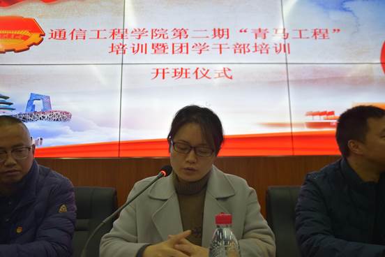 本次培训进行的第一项是开班仪式,出席开班仪式的有通信工程学院党总支书记曾晓宏教授、党总支副书记万鹏、学管科科长张攀、通信技术党支部书记姚先友,思想政治辅导员赵旭。
