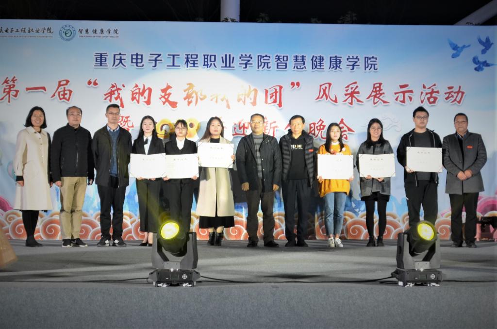 为积极引导青年大学生培育和践行社会主义核心价值观,进一步繁荣校园文化,增强2019级新生对学院的归属感。11月19日下午六点十五分,智慧健康学院在风雨篮球场举办了第一届“我的支部我的团”风采展示活动暨2019年迎新晚会。副校长冉学农教授在晚会开始前致辞,他希望同学们以学校为荣,积极投身智慧健康产业;希望同学们能够做优秀共青团员积极投入到两个一百年建设中去,坚定不移地跟党走;也希望同学们能够珍惜青春不负年华,成就光明前景。出席晚会的还有党委学生工作部部长何光明教授、智慧健康学院党总支书记李林教授、团委袁玉刚书记、智慧健康学院童世华副院长、智慧健康学院团总支任文慧书记、学院辅导员以及其他二级学院的学生干部等。