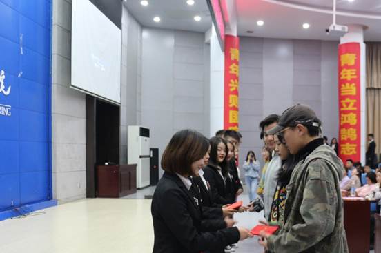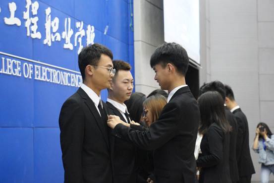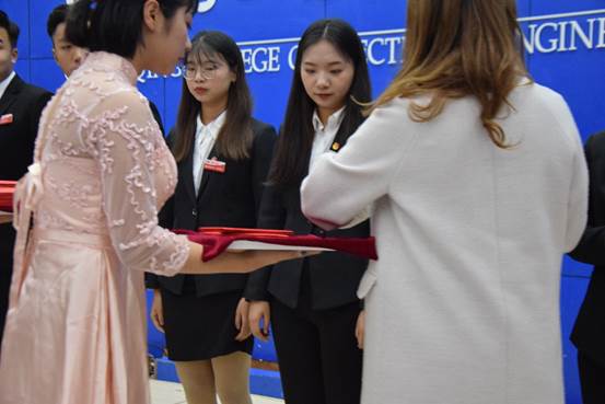 通信工程学院第七届团总支·学生会干部为通信工程学院第八届团总支·学生会干部佩戴胸牌