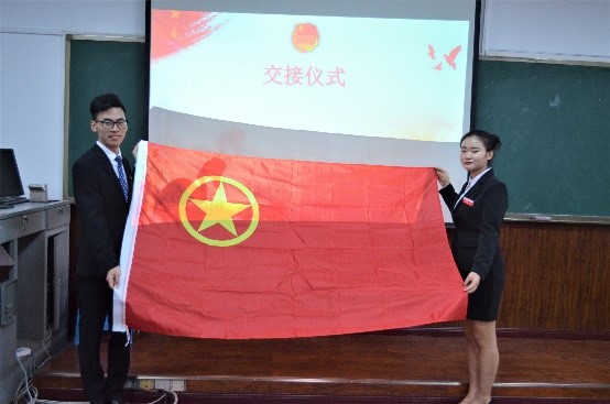 大会第三项,团总支书记任文慧老师宣读新一届干部任命决定,并向新一届团总支·学生会干部颁发聘书。接下来,大会进行了庄严的团旗、会旗和萤火虫队旗的交接仪式。