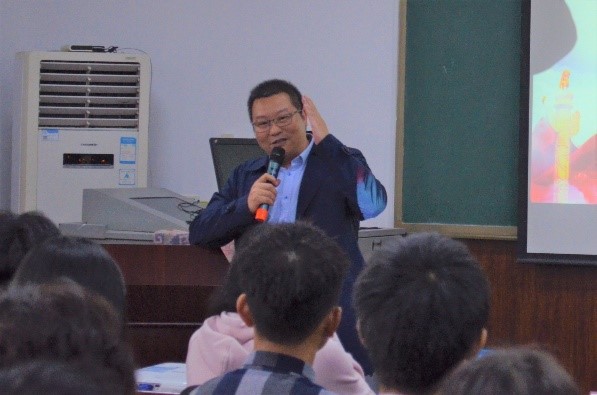 大会第一项,全体起立奏唱《光荣啊,中国共青团》。大会第二项,学院党总支书记李林讲话。李林首先对上一年度团总支·学生会的工作给予了充分肯定,高度赞扬了第一届团总支·学生会干部的辛苦付出;随后,李林寄语新一届学生干部和干事,提出了两个“期望”和一个“要求”:一是期望同学们都能够成为“斜杠青年”,既发展好综合素质,又学习好专业技能;二是期望共青团团员都能够做好党的助手和后备军,发挥好突击队作用和联系广大青年的桥梁作用;要求已卸任的团总支·学生会干部能够积极发扬“传、帮、带”的精神,帮助新任学生干部尽快熟悉工作,并优质开展工作。