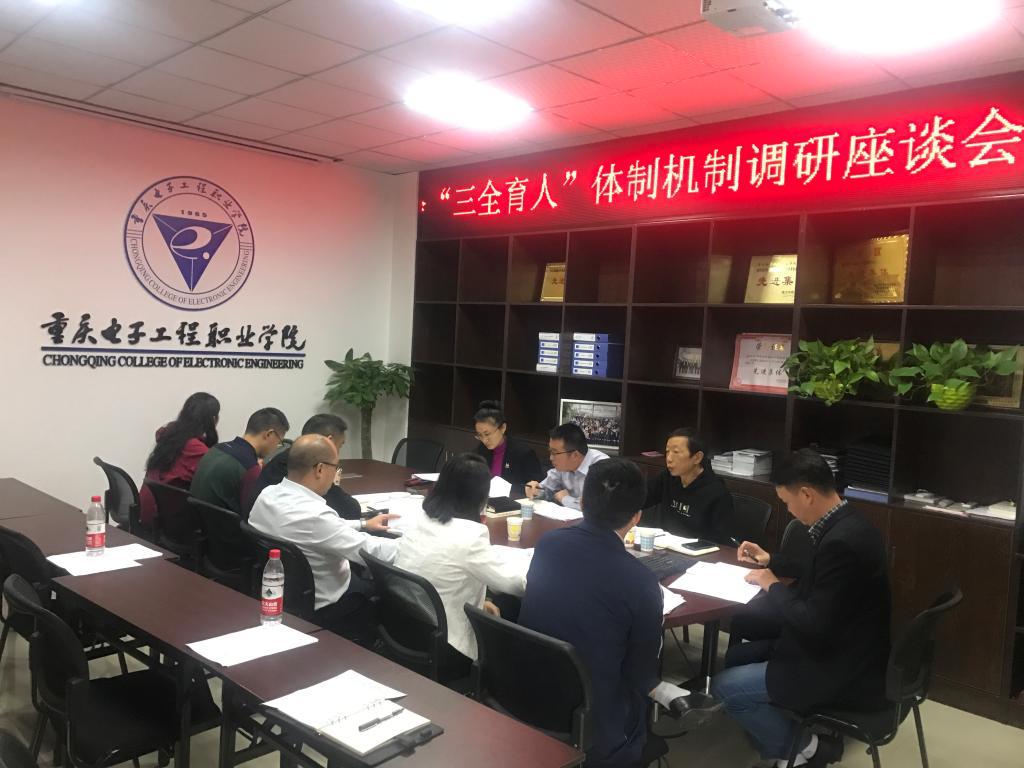调研分两个阶段,第一阶段由各部门负责人就目前“三全育人”工作开展情况进行座谈交流,第二阶段副校长黄爱明作总结讲话。