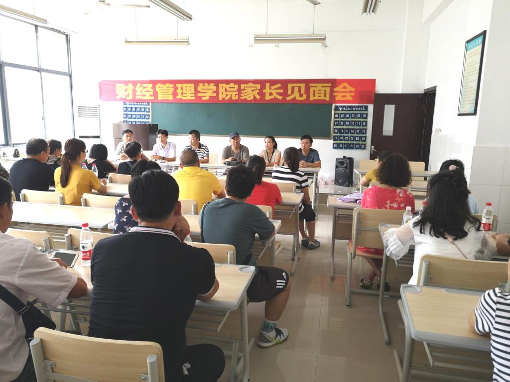 2019年9月9日下午14:30,财经管理学院2019级新生家长见面会在南区3207教室顺利举行。学院院长黄志平,党总支副书记廖坤科,智能物流专业群主任王雪峰,数字贸易专业群主任朱彤、康亮,财经科技专业群主任赵小刚,团总支书记汪佐丽参加了本次见面会。