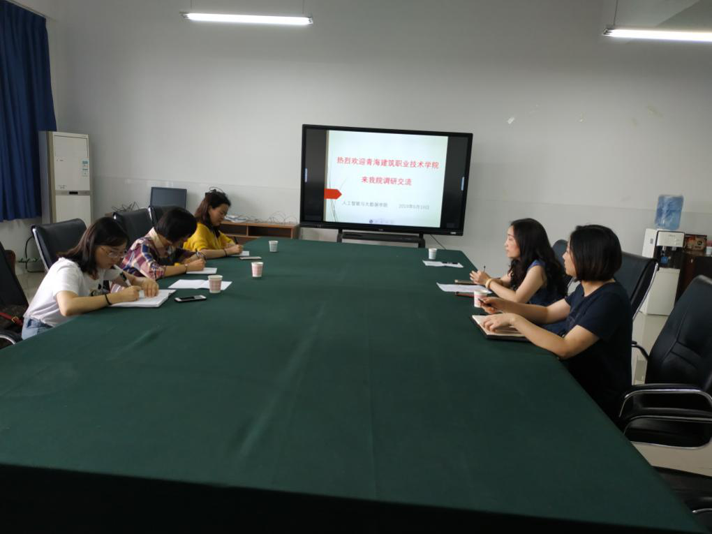 2019年6月19日下午,青海建筑职业学院信息技术系副主任李明燕一行三人来到pg国际人工智能与大数据学院,就云计算和大数据专业开办情况、招生就业情况、人才培养及教学工作进行调研。人工智能与大数据学院党政科长甘沅鑫、云计算与大数据系副主任付雯、云计算专业教师陈杏环、人工智能系教师张浩淼出席了交流会。