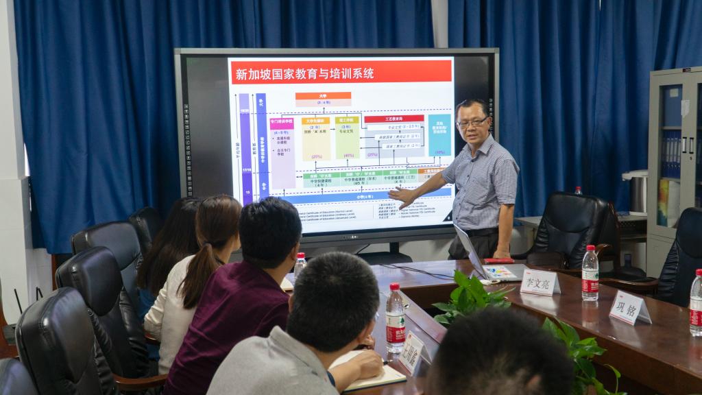 李老师的介绍引发了在座老师们的热烈讨论,同时李老师也耐心地回答了大家提出的疑问。在座老师纷纷表示深受新加坡工教局教育模式的感染,让他们深刻体会到了新加坡政府非常重视职业教育实训,学校各专业与企业需求息息相关,比如航天枢纽、美容美发、电子工程、机械工程、护理等专业的教学设备就是与社会进行了最有效的对接,保证在教学中学生能够掌握最先进的设备操作方法,毕业后就能在企业进行生产操作,解决企业生产过程中遇到的问题和进行创新、研发。