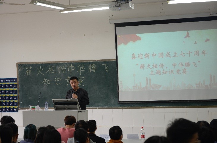 为丰富学生生活,提高大学生学习积极性,本着普及知识,展现当代大学生风采的思想,2019年5月9日上午9:30,电子与物联网学院信息服务系在7-109举行喜迎新中国七十华诞——“薪火相传,中华腾飞”主题竞赛活动。
