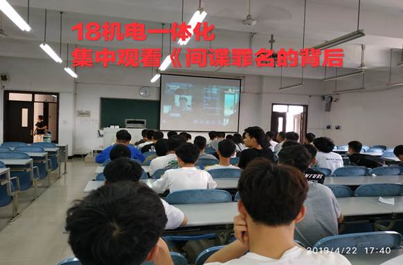 为深化“4.15”全民国家安全教育日教育宣传工作,加强反奸防谍教育和普法宣传,4月19-20日,智能制造与汽车学院组织全院师生集体收看了央视“社会与法”频道《平安365》栏目播出的新闻宣传片《间谍罪名的背后》。